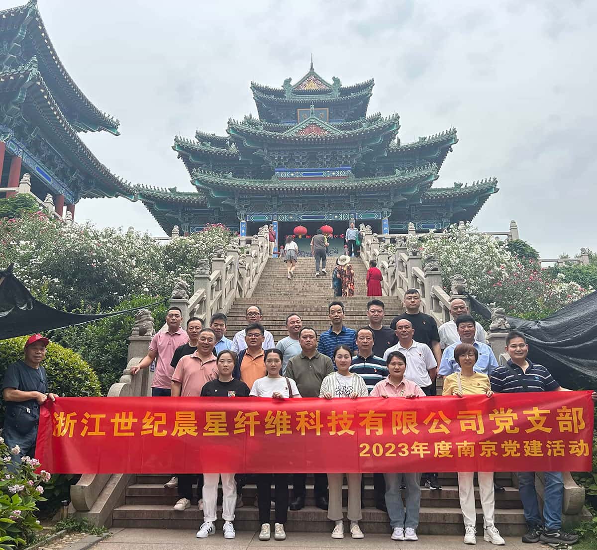 A Torre Yuejiang é um edifício famoso da cultura Jiangnan. Ele está localizado no topo da Montanha do Leão, na Torre do Tambor, em Nanjing, província de Jiangsu. É famoso em todo o mundo por causa dos Registros da Torre Yuejiang do Imperador Hongwu e Song Lian. A Torre Yuejiang registra vividamente a alusão do Imperador Hongwu, o monarca fundador da Dinastia Ming, à construção de um sistema governamental limpo. Todos os membros da filial do Partido da Zhejiang Century Morning Star Fiber Technology Co., Ltd. visitaram as pinturas e placas de porcelana dentro do Edifício Yuejiang e sentiram a integridade dos governantes e líderes para o povo.