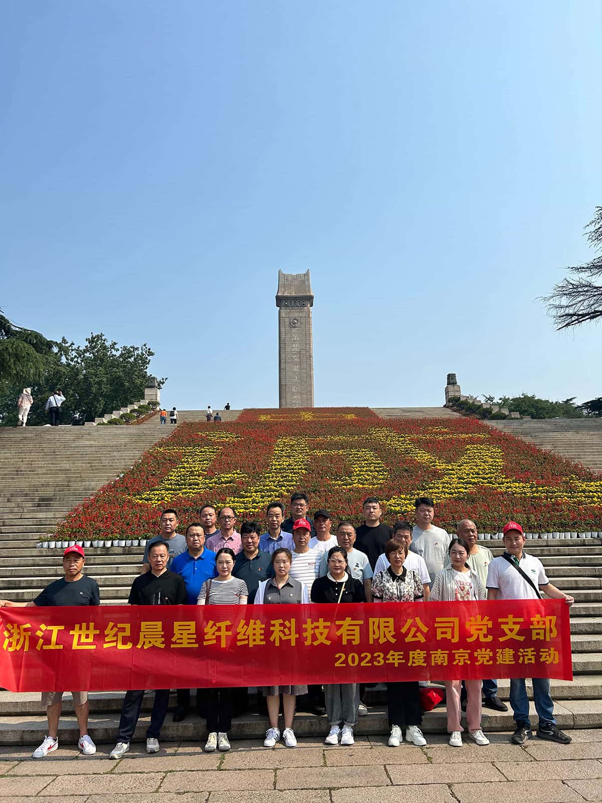 Terra Jinfen das Seis Dinastias, Prefeitura Imperial de Jinling é uma elegante Nanjing com salgueiros florescentes e mercadores poéticos, e também uma cidade que marca o início do período moderno tardio da China. Ela testemunhou as vicissitudes e dificuldades da nação chinesa ao longo do século passado, a humilhação e a resistência, a exploração e a luta. Em 13 de junho, a filial do Partido da Zhejiang Century Morning Star Fiber Technology Co., Ltd. realizou um evento de dois dias do Dia da Festa com tema de Nanjing intitulado Respeitando os Pioneiros Revolucionários . Todos os membros do partido e membros do partido em estágio probatório da empresa participaram deste evento.