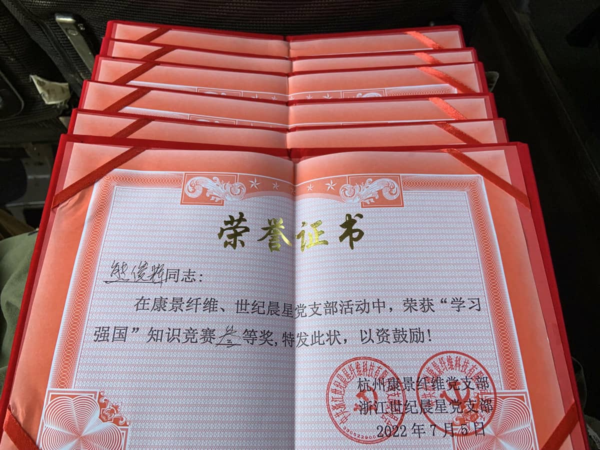 Em 5 de julho, a filial do partido da Zhejiang Century Morningstar Fiber Technology Co., Ltd. e a filial do partido da Hangzhou Kangjing Fiber foram a Shangrao, província de Jiangxi, para visitar o memorial do campo de concentração de Shangrao, produto do incidente no sul de Anhui. . No caminho, foi realizada no ônibus uma competição conjunta em pequena escala para aprender o conhecimento de um país poderoso. A atribuição de certificados honorários e bónus visa reforçar o conhecimento teórico e melhorar a qualidade dos membros do partido!
